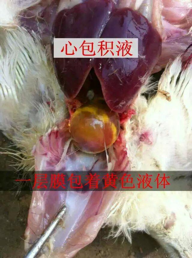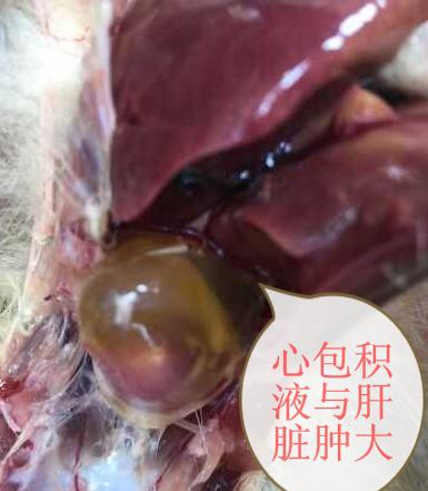2、解剖變化:主要表現(xiàn)心包積水,心力衰竭,心包內(nèi)有大約10-30毫升液體,積水為黃色透明,為漏出液,肝臟腫大,發(fā)黃,有壞死,出血,肺臟淤血,水腫,腎臟出血,多混有別的疾病感染而表現(xiàn)為腺胃出血,腸道出血。