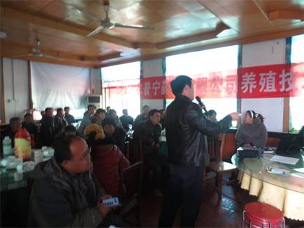 王總現(xiàn)場(chǎng)向養(yǎng)殖朋友們展示公司產(chǎn)品