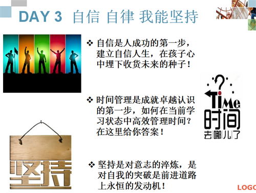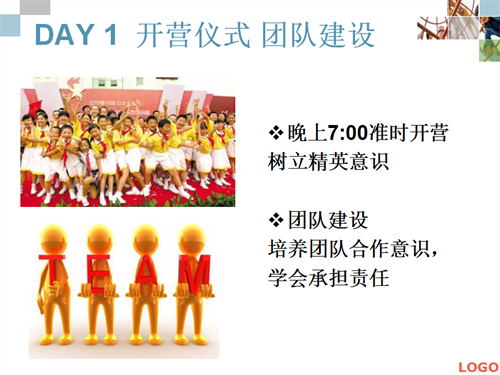 1、樹立夢想和目標 2、深度激發(fā)潛能,勇敢行動 3、打開心扉,信任和付出 |