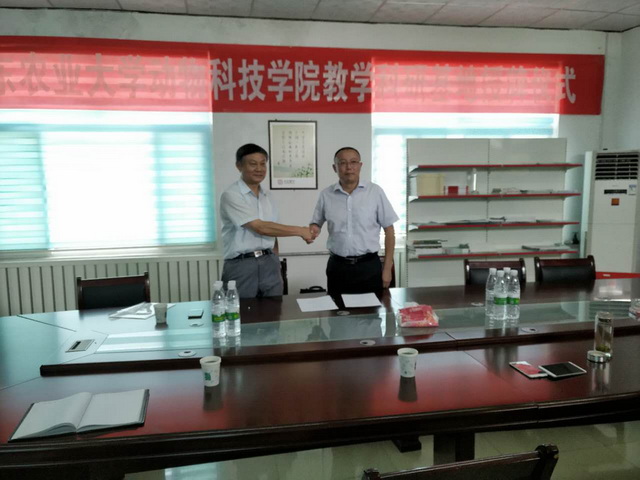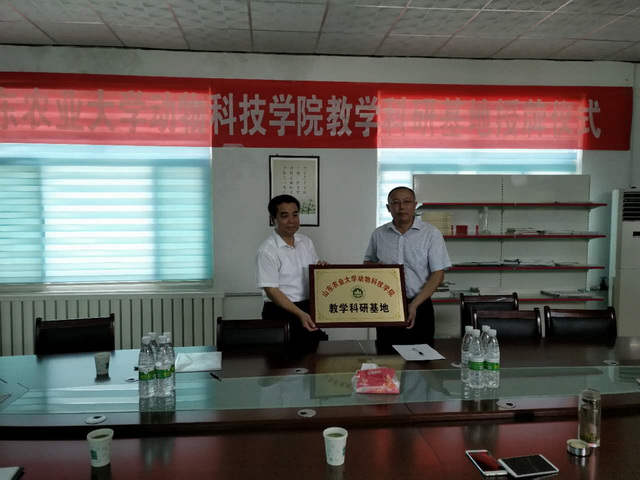 2017年7月13日,山東農(nóng)業(yè)大學(xué)動(dòng)科學(xué)院教學(xué)科研基地揭牌儀式在山東中農(nóng)普寧藥業(yè)有限公司舉行。山東農(nóng)業(yè)大學(xué)動(dòng)科學(xué)院院長(zhǎng)崔言順教授為山東中農(nóng)普寧藥業(yè)有限公司教學(xué)科研基地揭牌,副院長(zhǎng)趙孝民教授與公司董事長(zhǎng)康魯風(fēng)先生分別代表雙方簽署基地建設(shè)協(xié)議書(shū)。此次雙方簽訂合作協(xié)議后,山東農(nóng)業(yè)大學(xué)動(dòng)科學(xué)院將充分發(fā)揮學(xué)校的專(zhuān)業(yè)優(yōu)勢(shì),將為我公司指導(dǎo)產(chǎn)品設(shè)計(jì)和研發(fā),提升產(chǎn)品科技含量,加強(qiáng)公司員工專(zhuān)業(yè)知識(shí)培訓(xùn),安排大學(xué)生來(lái)公司實(shí)習(xí)等方面提供強(qiáng)有力的后盾;本教學(xué)科研基地是山東農(nóng)業(yè)大學(xué)動(dòng)科學(xué)院與我公司校企融合、強(qiáng)強(qiáng)聯(lián)手、誠(chéng)信打造的產(chǎn)學(xué)研一體化平臺(tái),為我公司日后長(zhǎng)期健康發(fā)展提供了堅(jiān)實(shí)保障。