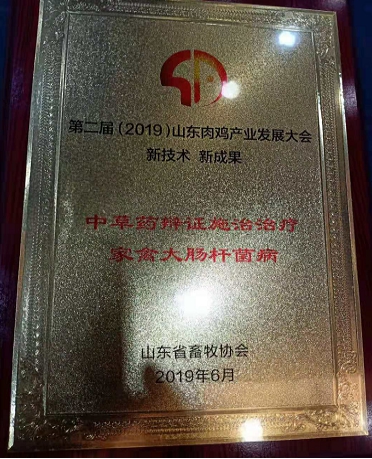 公司榮獲山東省《中草藥辨證施治治療大腸桿菌》新技術新成果獎
