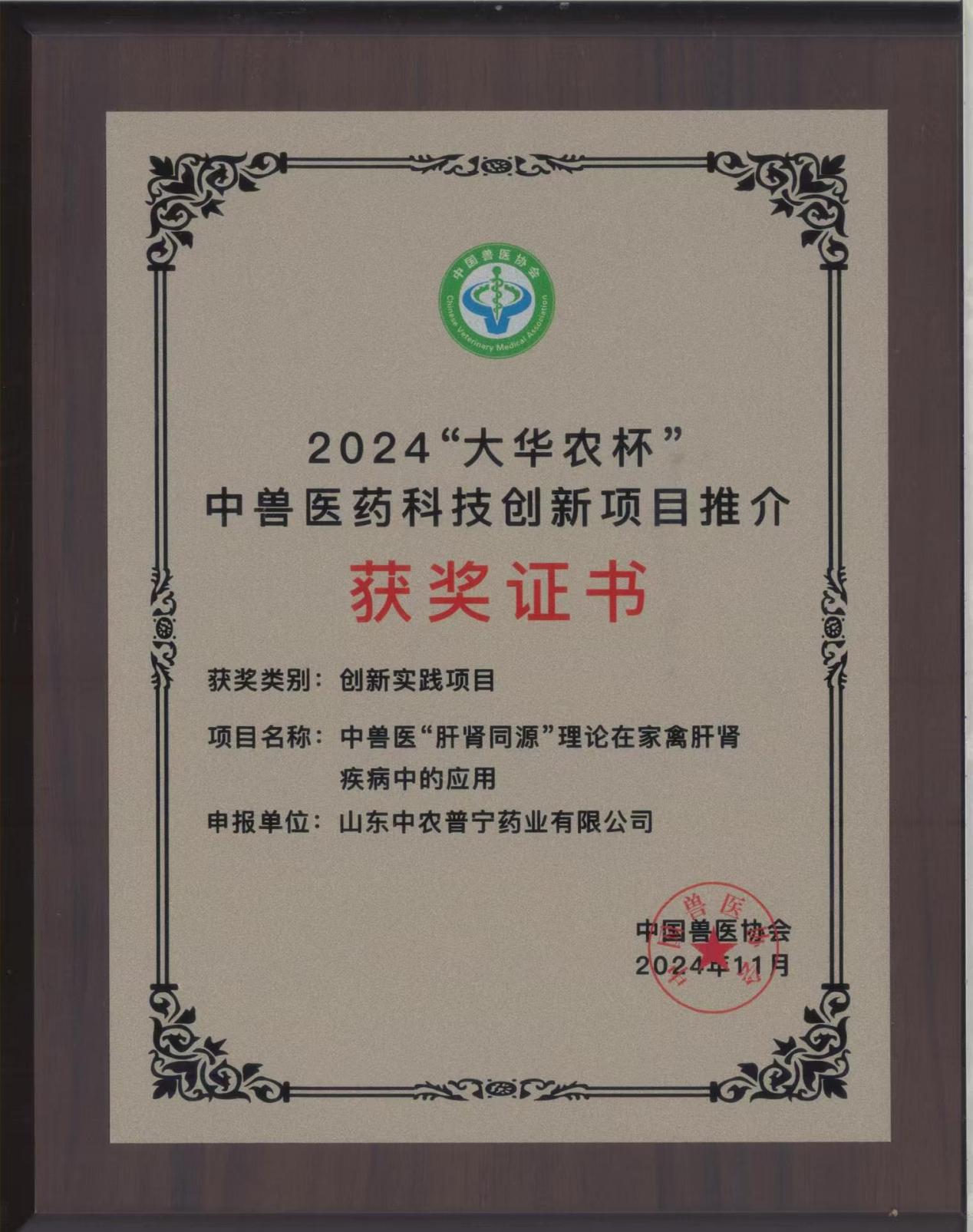 論壇以“中獸醫(yī)·中獸藥—one health新質生產力”為主題,圍繞中獸醫(yī)藥的傳承創(chuàng)新、人才培養(yǎng)和平臺共建三大核心議題進行。在本次論壇中,公司技術總監(jiān)王金紀的《中獸醫(yī)“肝腎同源”理論在家禽肝腎疾病中的應用》(暨甘甚寶研發(fā)理念和思路),榮獲中國獸醫(yī)協(xié)會2024年“大華農杯”中獸醫(yī)藥科技創(chuàng)新項目獎。